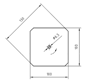 試樣制備,標(biāo)準(zhǔn)中試樣尺寸為100mm*100mm的正方形片,四周棱角,中部開有一直徑為6.5的開孔,如下圖所示: